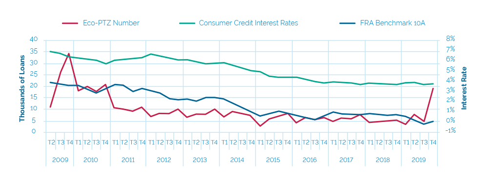 The graphic below shows the number of EPTZ loans borrowed from the beginning of this incentive. However, the borrowing rate of this type of loans is lower than expected, particularly for the period preceding the COVID-19 crisis.